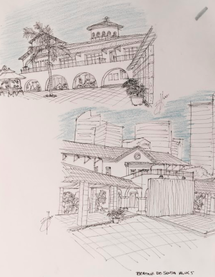 O pátio central, localizado na porção de cota mais elevada do terreno, abriga a piscina e proporciona ampla vista para a beira-mar. Esse local acabou nos oferecendo francas visuais e inúmeras possibilidades de temas para desenhos. O dia estava lindo e mais uma vez o sol não perdoou ninguém. Apesar disso pudemos desenhar sentados e à sombra. Devido ao acesso controlado ao clube tivemos que fazer uma lista de inscrição. Foram mais de 60 interessados e 44 participantes. Foi uma manhã bastante legal e proveitosa como pode ser conferido nos desenhos abaixo. Até o próximo!