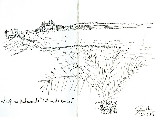 O almoço foi junto à praia, no restaurante Tábua de Carnes